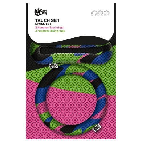 Les anneaux de plongée en néoprène BECO-SEALIFE sont amusants à jouer dans la piscine. Les anneaux de revêtement sont remplis de sable de quartz et coulent au fond de la piscine. Les tours de plongée sont recouverts de néoprène et sont doux au toucher. Les anneaux de plongée sont colorés en rose, bleu, vert et noir et mettent les enfants au défi de plonger jusqu’au fond et d’attraper les barres de plongée. Des jouets amusants pour des heures de natation et de plaisir aquatique !Ensemble de 3 pièces et livré dans un sac en filet