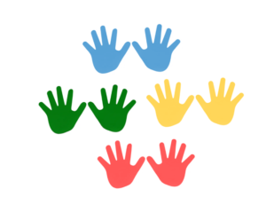 Empreintes de mains pédagogiques, conçues pour être positionnées au fond